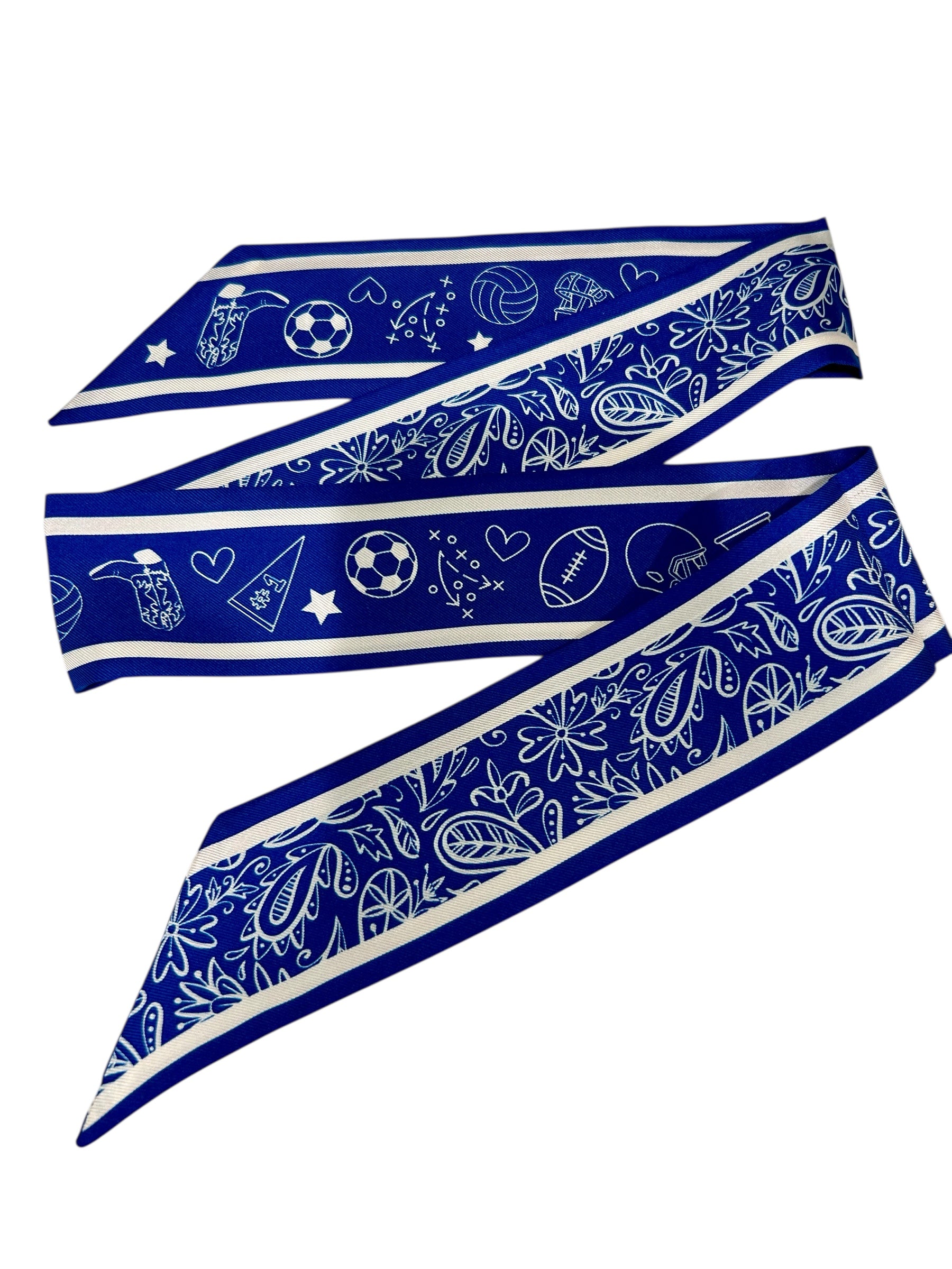 This hand drawn, “Go Team” twilly is the perfect accessory to wear to your cheer on your favorite teams! Wear it in your hair, on a boot, around your purse, as a belt or keep it classic as a neck scarf!