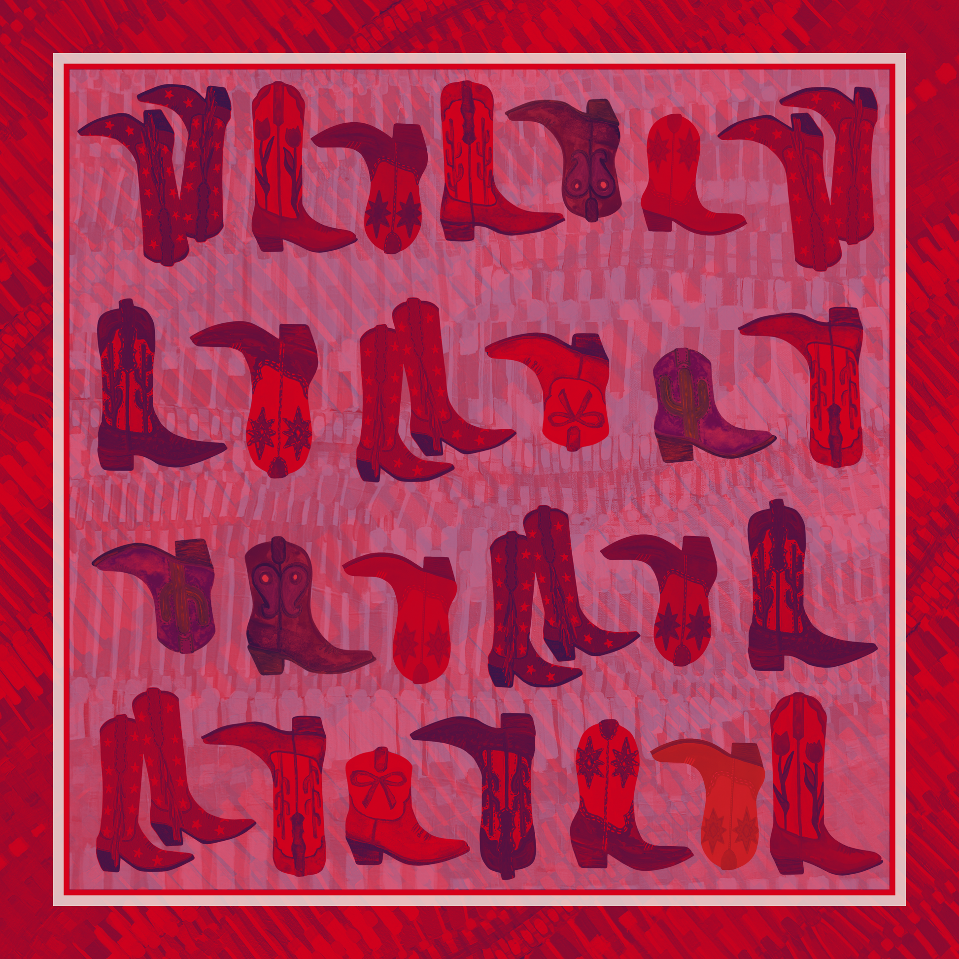 This gorgeous RED boot scarf by artist Rachel O’Conner is absolutely stunning! The colors will look stunning by adding a perfect pop of red to any outfit or framed.